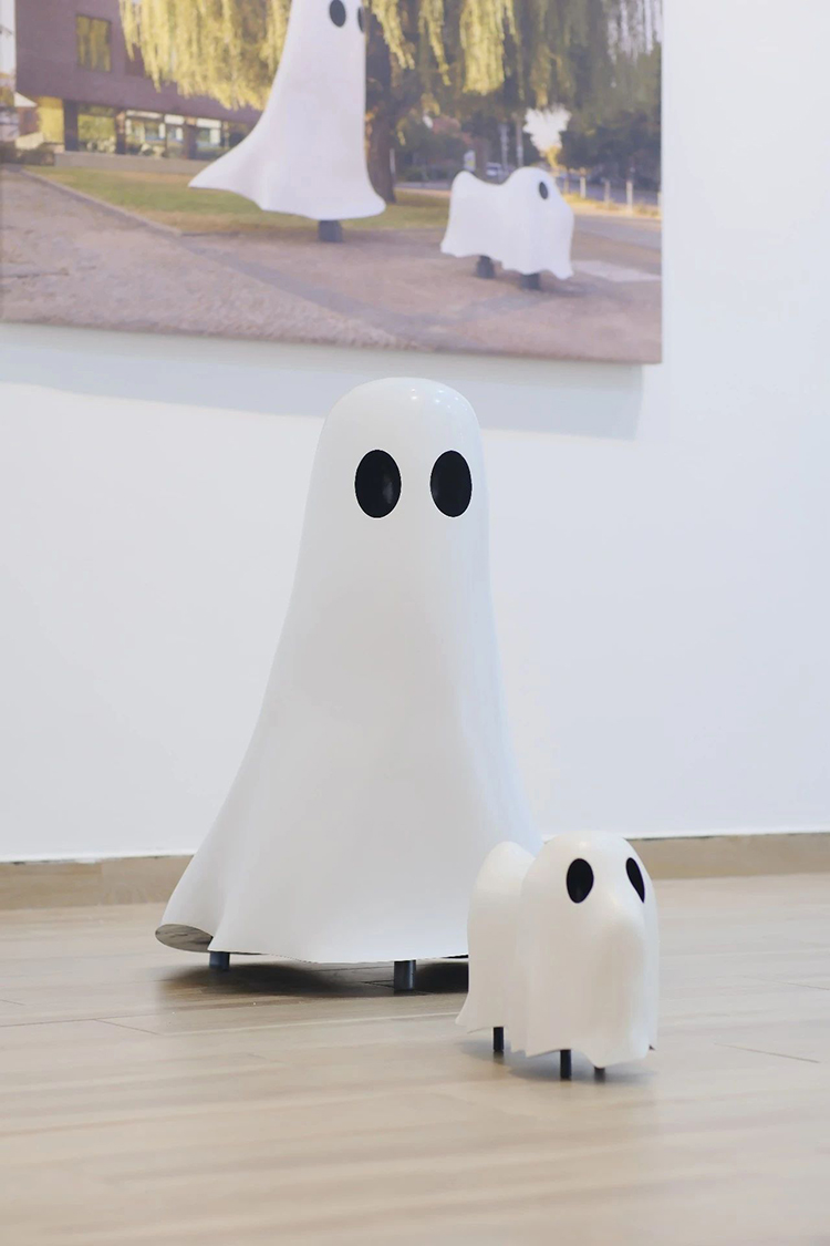 故事在打破多重界限的路灯,鬼头鬼脑的可爱幽灵、自由起舞的电塔……间跳跃,任何一件作品可以是观看的开始、转折或未完待续,在城市里散步,哪有什么固定模式,踏出左脚或右脚?该是往西或往东?欣赏的是正面或背面?先别多想,启程就对了。