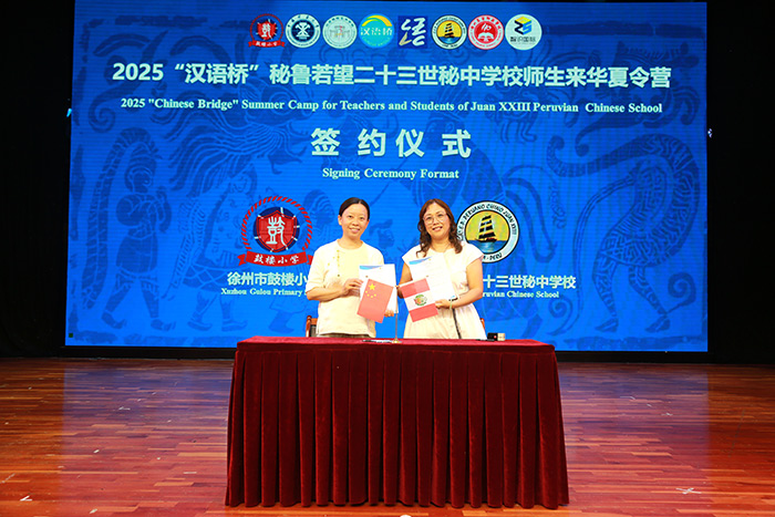 当太平洋的海风邂逅两汉大地的晨露,一场跨越山海的文化之约,于2025年6月26日-7月9日,在古彭徐州悄然绽放。由教育部中外语言交流合作中心主办、徐州高等师范学校联合徐州三所名校共同承办的秘鲁若望二十三世秘中学校师生“汉语桥”来华夏令营,让38名秘鲁师生,在楚韵汉风的浸润中,开启了一段解码中国两汉文明的奇妙旅程。徐州市教育局教师工作处处长李进强;徐州高等师范学校党委书记、校长苗苏莉;中国矿业大学国际学院副院长房坤;江苏模特艺术学校党委书记、校长李乐;徐州市鼓楼小学校长陈娟;徐州教育在线总监周燕青、智识国际总经理刘甜、若望二十三秘中学校校长詹妮弗(Jennifer Romy Pajan Lan )及夏令营全体师生共同出席了7月4日的夏令营结业典礼。营员们还参观游览了北京长城、颐和园,上海博物馆、外滩和古猗园。将东方古都的千年风韵、国际大都市的日新月异和中国师生的深情厚谊带回到了太平洋彼岸。