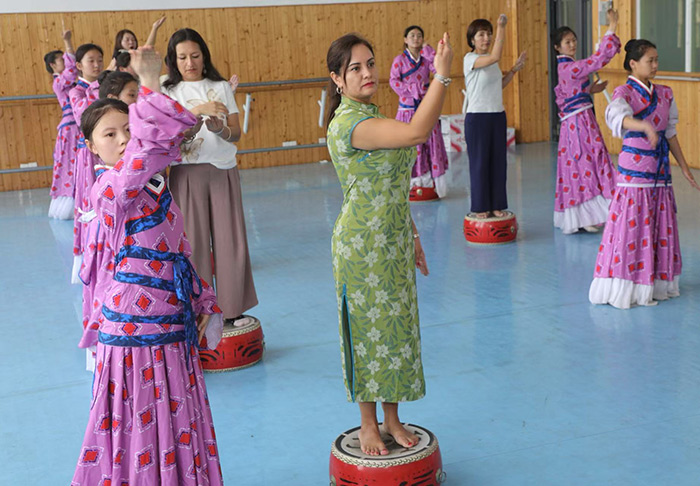 秘鲁师生在江苏模特艺术学校体验中国舞