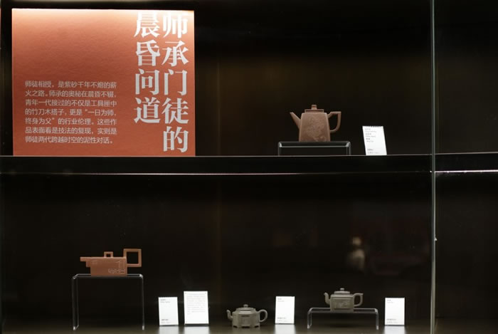 “非遗新生——行进中的紫砂新青年”是此次展览中的重要版块,由程辉、范永良、葛军、李遊宇、吕俊杰、王亚平六位紫砂艺术名家及其传承人的代表作品,拉开这一单元的展陈。