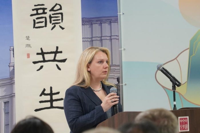 中国驻白俄罗斯大使张汶川,白俄罗斯体育和旅游部旅游司司长沃罗诺维奇·伊琳娜·尼古拉耶夫娜等出席活动并致辞。活动期间,约400名嘉宾参与,包括白俄罗斯各文博机构负责人、主要高校代表、新闻媒体人士及文化艺术爱好者。朱慧鹏为2025中国非遗雅集海外活动“茶和天下 曲韵共生”题字。