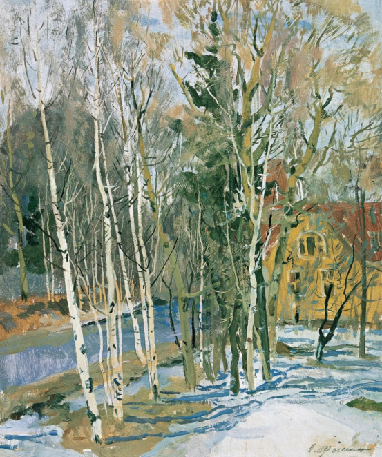 《阿力克赛特洛夫斯卡娅的风景》彼·弗明(俄) 板上油画,42cm ×35cm,1949 年