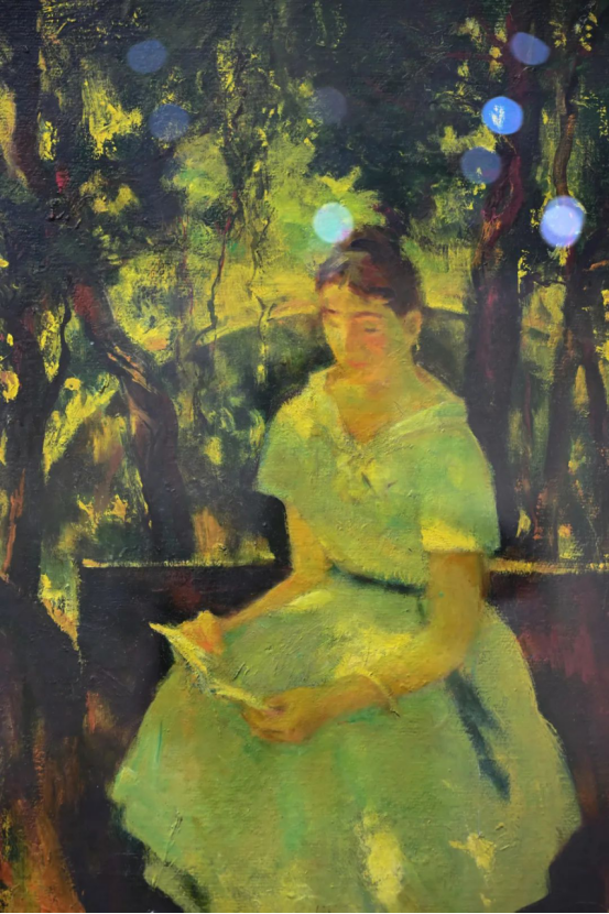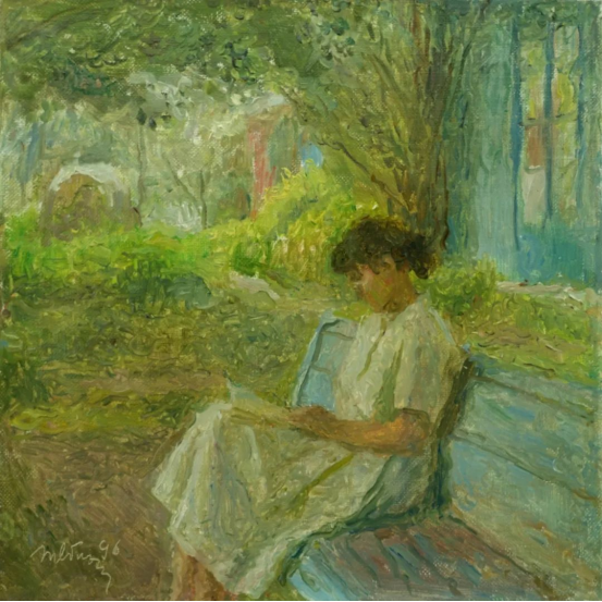 《阅读》塔·雅勃隆斯卡娅 (乌)布面油画,40×40cm,1996年