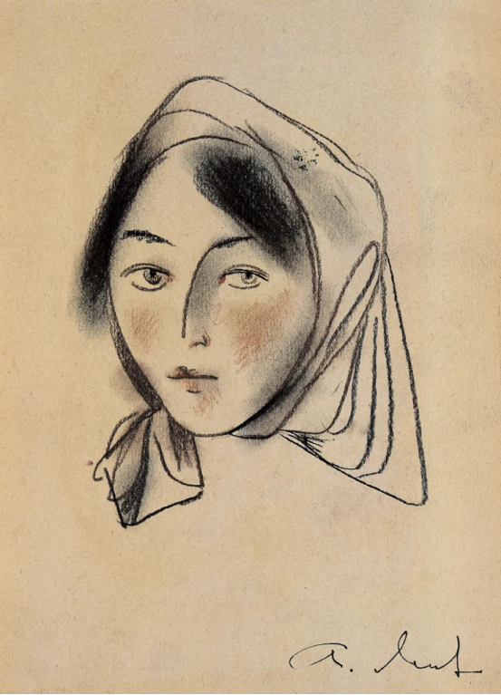 《包头巾的妇女》安·梅尔尼科夫(俄)纸上炭精条,29×21cm,1984年