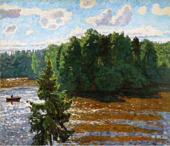 《翱翔在湖上的海鸥》谢·特卡乔夫(俄);阿·特卡乔夫(俄)布面油画,122×142cm,年份不详