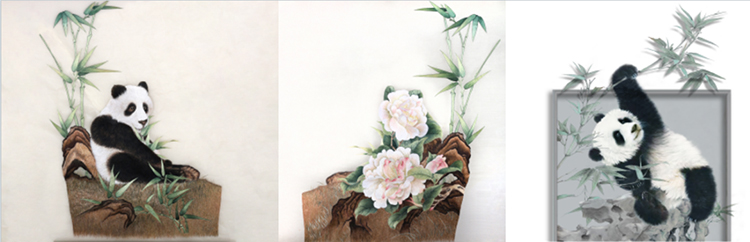 湖南省湘绣研究所-成新湘大师工作室 《熊猫·山茶花》《悠然自“竹”》