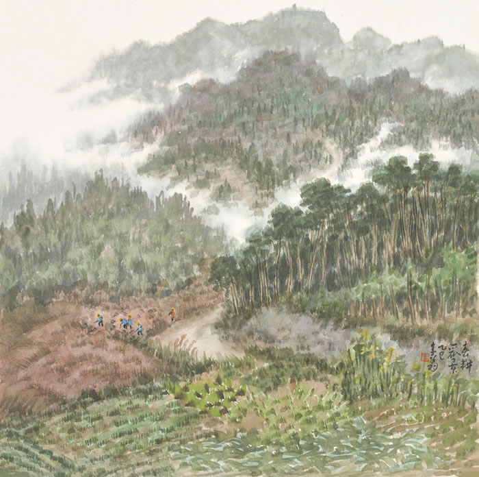 李翔《春耕丽景》宣纸设色 32cmx32cm 2025年-2