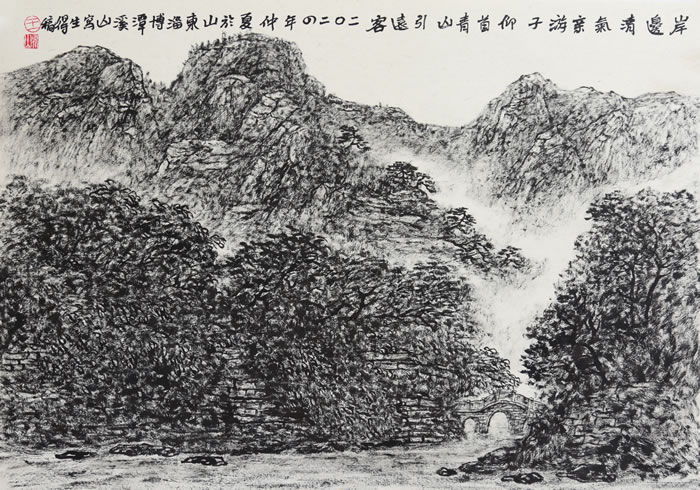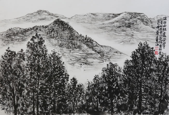 满目山林尽染翠 王界山 45X65cm 焦墨画 2025年