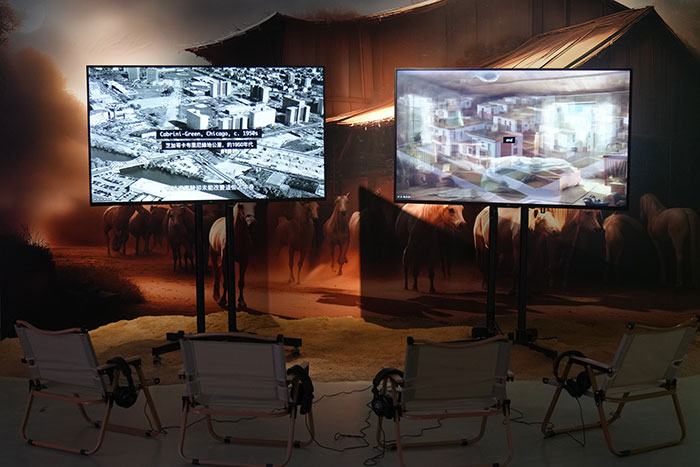 “实验涌现”板块的“实验”,意指不可知不可控的开放状态;“涌现”则是AI最迷人之处——一种在庞大算力与巨型语言残骸之间意外生出的灵光。作为“未来学研究中心”持续研究计划的一部分,本展区集中呈现了多位研究员的实验性成果,包括姚大钧的《战国百家》、邵立昊的《自在温柔之河》等。
