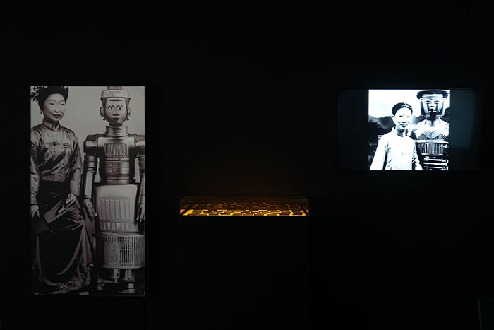 “记忆复写”板块中,德国跨界艺术家Boris Eldagsen,通过与 AI共同制作的系列影像,呈现了“从未发生”的虚假记忆,其中一幅作品曾获索尼世界摄影奖,但最终Boris声明该作品为AI创作而拒绝领奖,轰动一时。新加坡艺术家何锐安则以档案影像进入AI系统为起点,追问AI生成逻辑背后,历史记忆将走向何方;温辰旻在《兰芳实现》中通过AI重构南洋华裔文化乌托邦;越南艺术家阮太保的作品则以细胞自动机为算法织机,编织印象派与东方哲思的时空对话。本板块的作品,展现了AI最惊人之处,正在于它是可以反复再写的记忆体,即记忆、历史、现实都有被改写的可能。