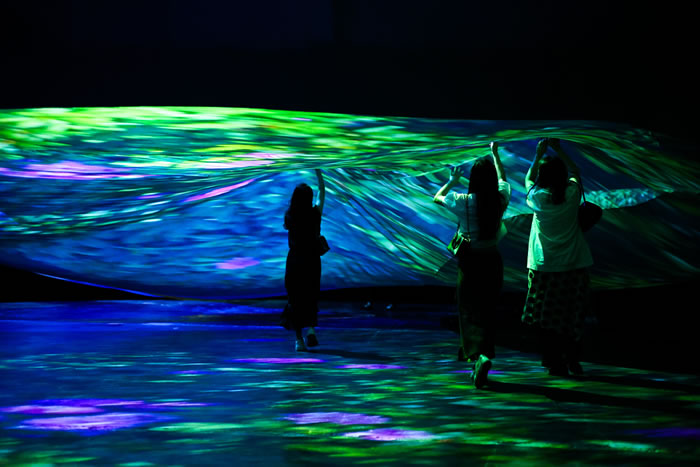 展厅现场观众与幕布进行互动,图片由UCCA尤伦斯当代艺术中心提供