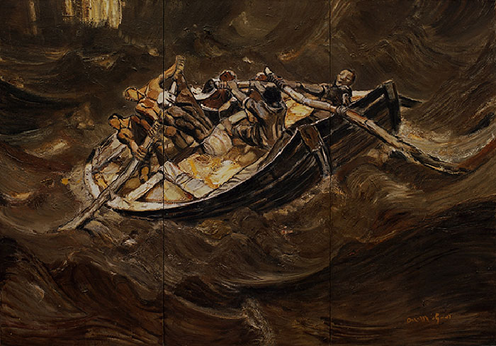 展览现场 《伏尔加河上的纤夫》 油画小稿(摄影_台馨遥)