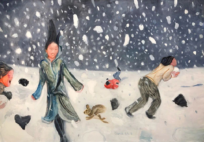 《小孩与鸽子》 87.5cm x 66cm 1954年
