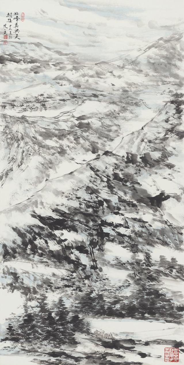 范一夫,1963年生于北京,自幼沉浸于丹青之道,师从国画大师刘继卣及其父范曾,奠定了扎实的国画根基。1988年,他赴日本留学,专攻东方艺术史,深化了对传统文化的理解。后旅居巴黎,潜心山水画创作数十载。他以中国哲学为根基,融汇西方艺术观念,广采各地风物,以全球视野探索中国山水画的创新路径。展厅中,《烟霞深处》《诗境平远》等作品生动展现了范一夫游走于古今、中西之间的独特艺术风格,其笔墨承载“道法自然”的哲学精神,于方寸之间展现万千气象。