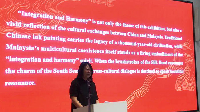 斯日古楞在致辞中表示,本次展览不仅是中国水墨艺术的一次集中展示,更是中马文化交流的重要实践。巡展汇聚26位艺术家的代表作品,融合传统笔墨与当代表达,旨在推动“一带一路”倡议背景下的艺术对话与文明互鉴。她强调,“融·和” 寓意文化共融、心灵互通,期望通过此次活动深化中马两国人民的理解与友谊,为中华文化走向世界注入新动能。