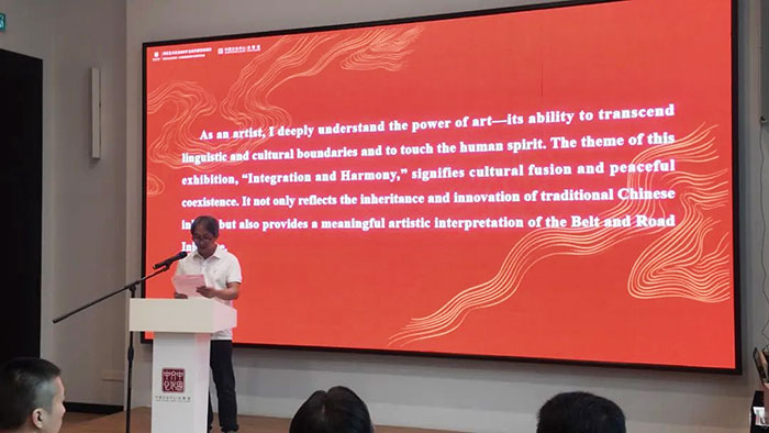 曾三凯代表参展艺术家致辞,他表示,“融·和”展不仅是对中国水墨艺术传承与创新的呈现,更是一次跨越文化边界的交流实践。此次巡展为中马艺术界提供了宝贵的对话平台,艺术家们期望通过面对面的交流,深化理解、共促共融,让中国水墨在世界多元文化中焕发新生机。
