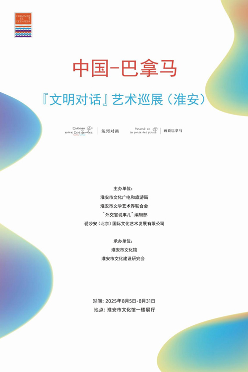 2025年8月5日,由淮安市文化广电和旅游局、淮安市文学艺术界联合会、“外交官说事儿”编辑部、爱莎安(北京)国际文化艺术发展有限公司联合主办,淮安市文化馆、淮安市文化建设研究会承办的中国-巴拿马“文明对话”艺术巡展淮安站正式拉开帷幕。这场以艺术为桥的跨国文化交流主题画展,为淮安市民带来了一场视觉与精神的双重盛宴。