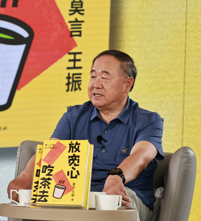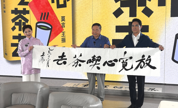 8月5日,由人民文学出版社出版的莫言新书《放宽心,吃茶去》在莫言抖音直播间首发。该书是诺贝尔文学奖获得者莫言与好友、北京舒同文化艺术研究会会长王振共同创作的随笔集。新书首发直播现场,莫言、王振和资深媒体人、主持人杨澜一起,畅谈了这部从真实生活中来的随笔集创作背后的点点滴滴,分享了“放宽心境”走进生活“集市”后的小故事。