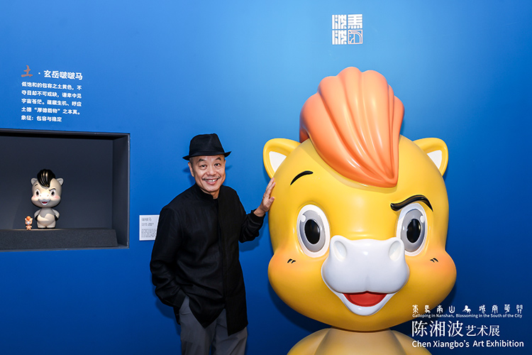 在展览的开幕式上发布陈湘波团队为2026年马年创作的马年生肖潮玩“啵啵马”的形象。由陈湘波担任总设计的2026马年生肖潮玩“啵啵马”,延续其“啵啵”系列标志性呆萌风格和治愈感,以圆润软糯的造型语言勾勒出Q版小立马造型,大眼睛搭配嫩黄马头,萌态十足,鬃毛融入层叠的祥云纹样,马蹄设计成元宝形状,整体色彩明快,兼具传统生肖呆萌韵味与现代潮玩质感,传递“马到成功”的美好寓意。同时,结合中国传统“五行”的观念,陈湘波团队还分别创作了:金·鎏光啵啵马、木·扶风啵啵马、水·涟漪啵啵马、火·赤焰啵啵马、 土·玄岳啵啵马等“五行”系列啵啵马,这些聚焦“马”主题的作品,以正“马”的奋进姿态呼应深圳敢闯敢试的发展精神,同时也以“小蜜蜂”的勤劳意象致敬城市劳动者。