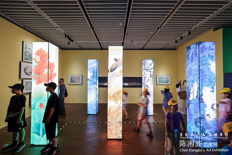 陈湘波表示:“南山是一片充满创造力与生命力的土地,三十五年的发展历程本身就是一部波澜壮阔的奋斗史诗。我深耕艺术领域数十年,始终希望让传统艺术在当下焕发新的光彩,而南山的创新精神给了我很多启发。这次展览的三个篇章,‘城南花开’是我对南山自然与人文的诗意回应,‘观荷新境’是传统与科技的碰撞尝试,‘策马南山’则是对这片土地奋斗精神的礼赞。我将自己对艺术的执着、对南山的热爱都融入其中,期待观众能从中感受到传统与现代的交融之美,更能体会到南山蓬勃向上的力量。”