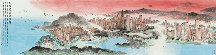 陈湘波《策马南山·城南花开》 纸本设色 100cm×388cm 2025年