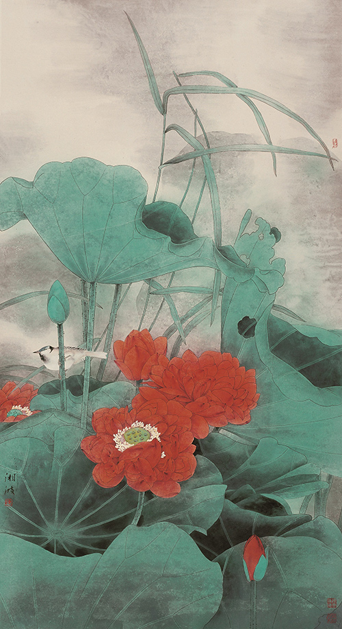陈湘波《清风晓露碧荷香》 168cm×90cm 纸本设色 2001年