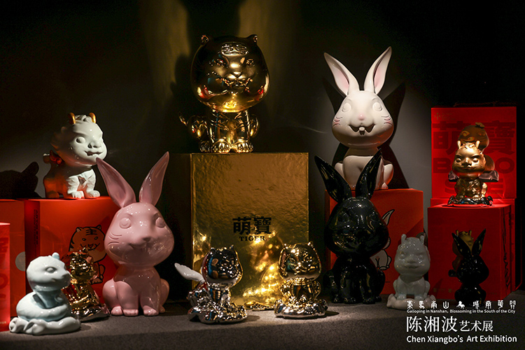 作为当代中国画坛与潮玩设计领域的双璧人物,陈湘波的艺术实践始终扎根于传统文脉的深厚土壤,又敏锐捕捉着时代精神的脉动。他以精湛工笔技法享誉业界,笔下花鸟虫鱼兼具古典意韵与现代审美;同时突破艺术边界,在公共艺术、数字艺术、潮玩IP设计等多元领域开疆拓土,让传统艺术在当代语境中焕发新生。从央视春晚广受喜爱的“瑞虎”“兔圆圆”生肖形象,到第三届湖南旅发大会标识与吉祥物“火出圈”,再到为顺丰速运打造的“小蜜蜂”IP,其作品始终以艺术温度连接大众,彰显传统美学的当代活力。