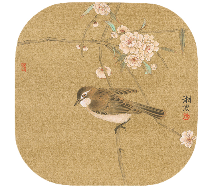 陈湘波《春枝栖雀》 38cm×38cm 纸本设色 2023年