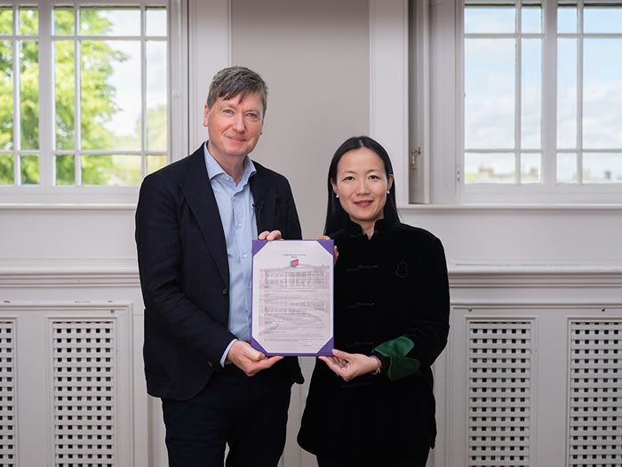 西蒙·格罗姆(左)和朱玮琦(右)在签约现场
