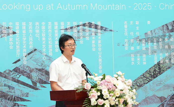 中国美术家协会副主席王来文在发言中提到,在龙岩举办的“仰望秋岳——2025·中国画山水作品展”已是第二届,该展在社会上获得广泛赞誉,反响热烈,推出了众多优秀作品和美术人才。参展作品题材丰富,风格多元,技艺精湛。尤为可贵的是,这些作品并非孤立存在,它们根植于中华优秀传统文化的沃土,将壮丽河山的自然之美与深沉厚重的文化积淀熔于一炉。可以说,这是一批饱含中国文化艺术精神、浸润闽西地方特色、展现时代审美追求的文艺佳作。