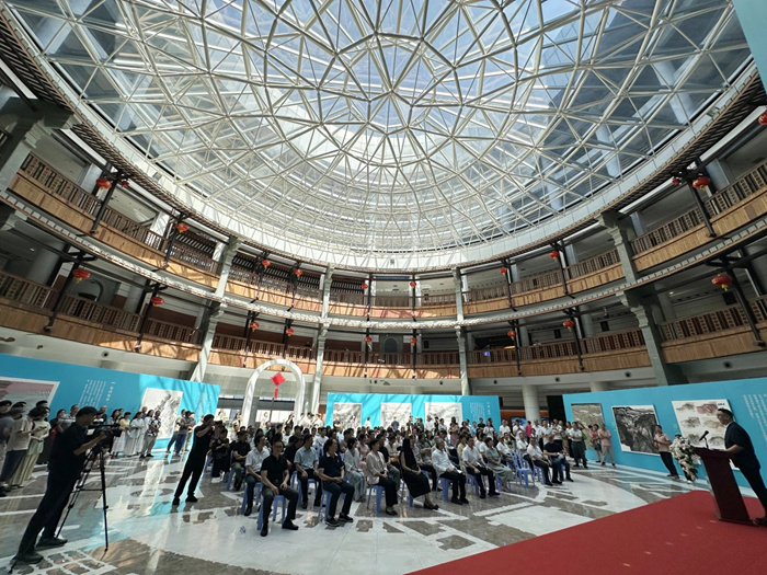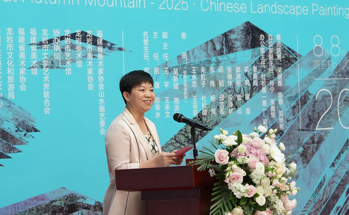 龙岩市文化和旅游局局长林丽凤介绍,龙岩是全国唯一一座以“龙”命名的地级市。这里有英雄的革命基因、神奇的永定土楼、深厚的客家文化、宜人的丹霞温泉、绚丽的生态山水,还有古朴的民俗风情和诱人的舌尖美味,客家文化、红色文化、生态文化相互融合,交相辉映,组成了“清新福建五彩龙岩”的美丽画卷。“仰望秋岳——2025·中国画山水作品展”中,来自全国各地的艺术家们传递了传统文化与时代精神碰撞交融的强大力量。