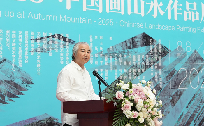 龙岩市人大常委会副主任张子平宣布“仰望秋岳——2025·中国画山水作品展”开幕。龙岩市文联党组书记、主席王永忠主持展览开幕式活动。