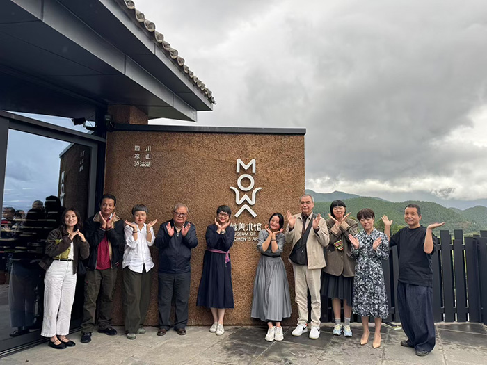 她美术馆《轻舟》展学术论坛嘉宾,在合影中做出“一起MOWA‘的手势