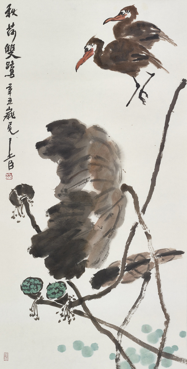 邢少臣 秋荷双鹭 138x68cm