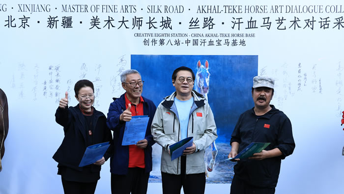 2025年9月6日,由新彊美术家协会、新彊油画学会主办,北京艺术天成书画院、新彊野马国际集团承办的长城·丝路·汗血马艺术对话暨“讲长城写长城画长城”采风写生创作第八站——走进中国汗血宝马基地在新疆野马古生态园启动。北京和新疆两地艺术家在此次研讨会上实现了跨越千里的艺术共鸣。全国政协委员,中国美术家协会副主席徐里等人出席活动。