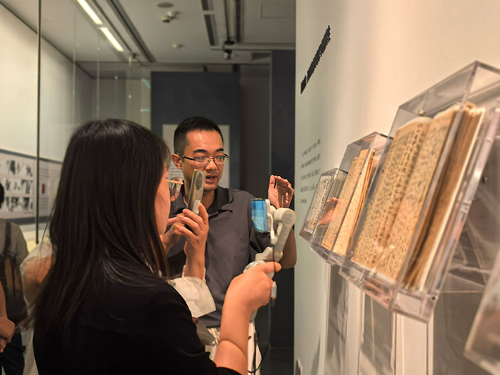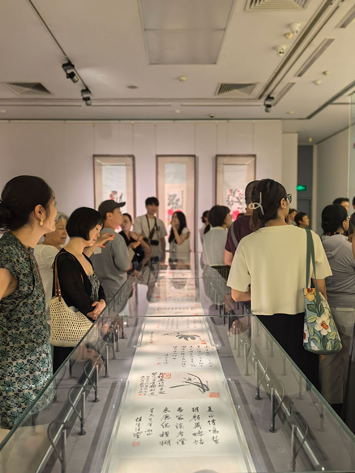 为生动展现齐白石的师承脉络,展览增设了“齐白石的师承谱系与笔墨再生”互动装置,观众可近距离阅读白石老人手稿真迹,品读其对前人的评点,也可以触摸翻转探索其艺术渊源的谱系关系图,直观感受名家之间的影响与共鸣。