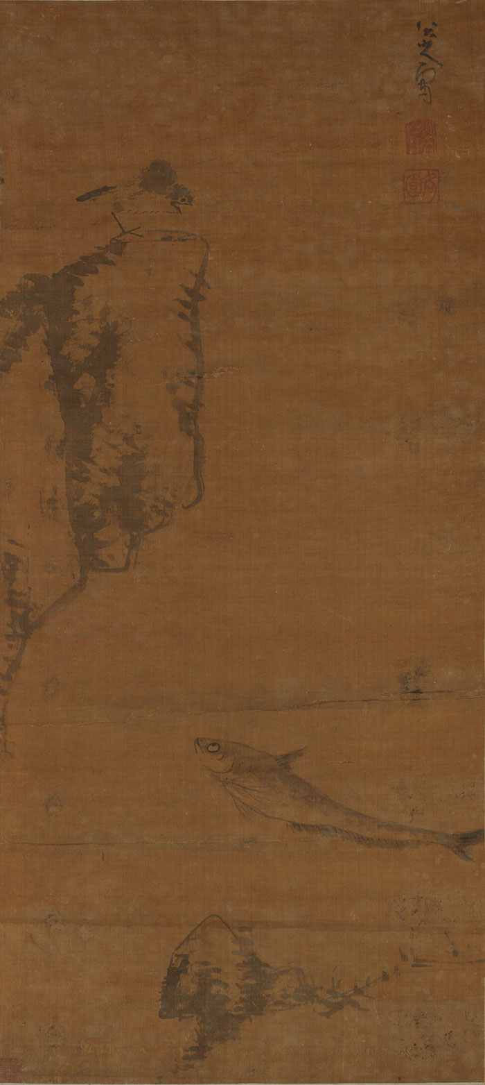 鸣鸟游鱼图 八大山人 清 108cm×48.5cm 纸本墨笔 天津博物馆藏