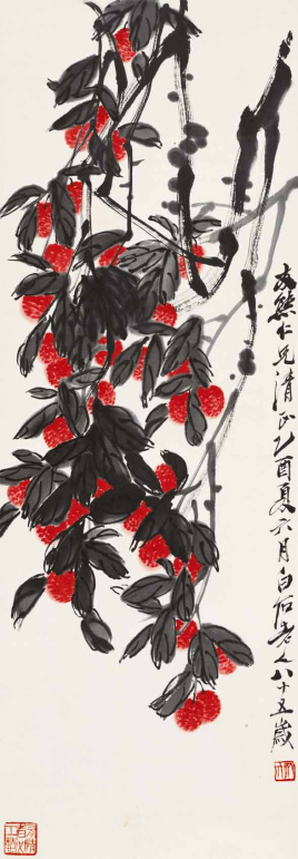 荔枝 齐白石 1945年 96.5cm×33.5cm 纸本设色 北京画院藏