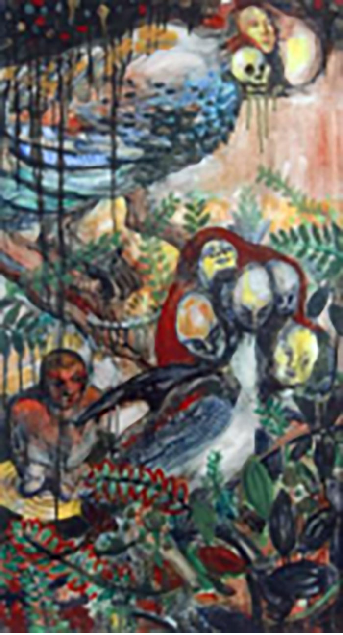 赵宏利的釉上彩系列作品《鸟人》,以随性而发自内心的方式探索艺术的“造型”可能,并不刻意追求工整与完美。他将日常生活中的碎片体验——散步时偶见的异形枝桠、动物园中拥挤的动物身影——通过颜料的流动缓缓铺展,把生活本身的鲜活与创作过程中的轻松感融汇于画面。颜料的自然流淌成为内心感受的直接投射,造型依情绪自然生长,宛如一场与自我嬉戏的“造型捉迷藏”,以本能的创作回应现实触动,保留那一刻的真切与自在。