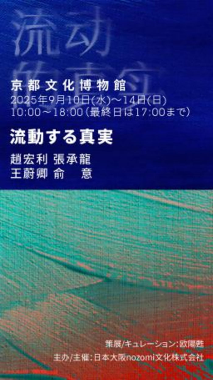 应日本京都文化博物馆的邀请,由日本大阪nozomi文化株式会社主办的“流动的真实”当代艺术展,于2025年9月10日至9月14日在该馆举办。本次展览集中呈现了四位来自中国上海、西安、杭州的优秀艺术家——赵宏利、张承龙、王蔚卿、俞意的多媒介创作,涵盖油画、瓷板画、数字绘画等多种艺术形式,以东方美学的当代表达,展开一场跨越文化与时空的对话。