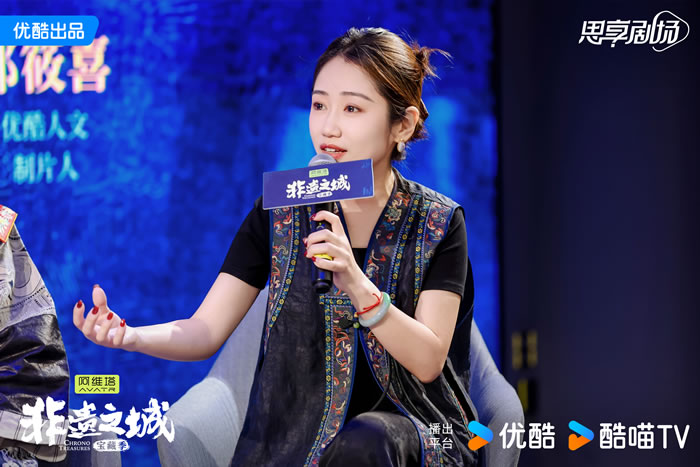 优酷人文纪实中心总经理王晓楠借势《非遗之城·宝藏季》,在现场正式公布了“优酷非遗100城计划”,优酷未来计划探索全国100座非遗之城,系统纪录和讲述非遗文化故事,认真践行“可持续非遗”。王晓楠表示,优酷人文一直在说“人文在人”,说到底就是“人如何活着,文如何延续”。“‘是否能让人们更好的生活’是我们始终思考的问题。非遗背后的深意是其‘智慧之道’的延展,从被看见,到被知道,被了解,被消费,被使用,继而走进日常,当非遗文化被重新认知,其对于整个乡村生活和经济发展都将更具驱动意义。所以我们希望透传的是非遗文化背后的精神,到底是什么成为了岁月精选。”