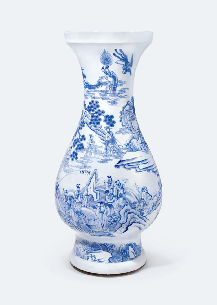 清雍正 青花淡描群仙祝寿图大琵琶尊