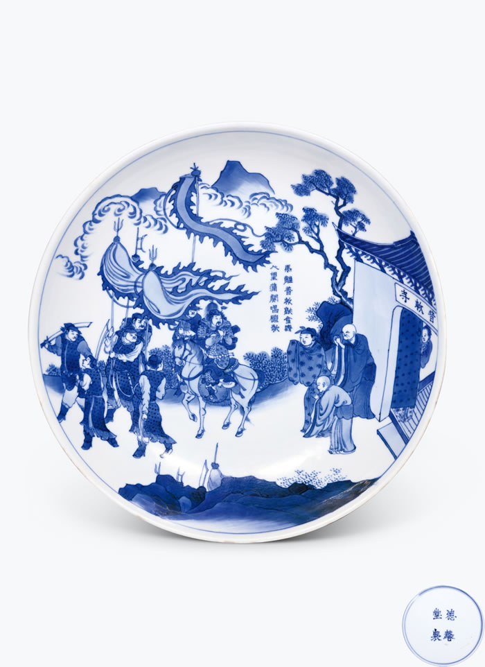 清康熙 青花西厢记之白马解围人物故事图大盘