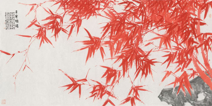 魏广君的作品始终萦绕着汉风的磅礴浩气。其书法结体取法汉碑,笔力沉雄如锥画沙,撇捺间见奇崛气象。绘画于笔墨与重彩间见中正,于浓淡、疏密、轻重中见变化。既入乎形相之中,不忽略一丝一毫的具象肌理,又出乎形相之外,于方寸之间,纳乾坤周转不息的神妙之几。篆刻作品更显雄奇。刀锋所向,果敢凌厉,线如铸铁,元气淋漓,激荡出沛然不可遏的精神锋芒。