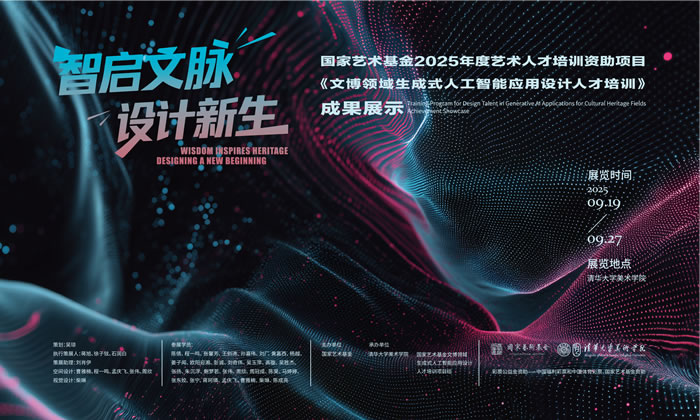 9月19日上午,由国家艺术基金资助的“文博领域生成式人工智能应用设计人才培训成果展”在清华大学美术学院开幕。本次展览集中呈现了由该项目培养的学员所创作的十六组设计作品,全面展示了生成式人工智能(AIGC)技术在文博数字化创新设计、公众教育和文化传承等多个领域的创新应用与深度探索。