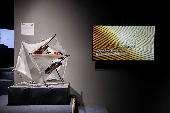 本次展览设立两大核心展区,高校创新成果展区集中展示中央美术学院近年来在艺术与科技融合领域的创新成果,重点呈现了AI驱动的美术创作、创意设计等多类项目及交互装置、AIGC影像、智能穿戴、智能制造等作品。通过这些多元表达,体现科技背后的艺术思辨。