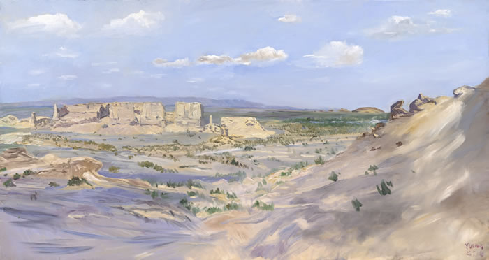 余丁《玉门关河仓城》300×160cm布面油画2024年