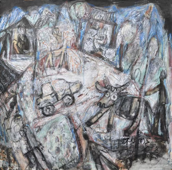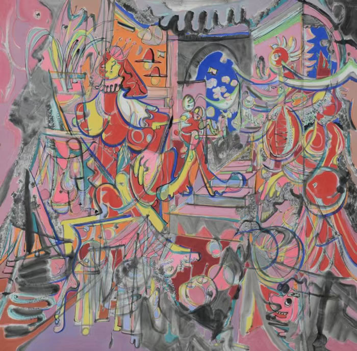 靳志强 《心象系列》 纸本彩墨 136x136cm 2025年