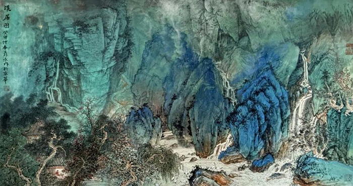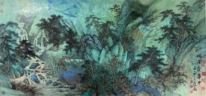 秋日的温暖厚重,恰与刘彦水山水画中沉雄苍茫的意境相映。他的笔墨间,既有对传统的虔诚传承——从五代宋元的风骨到黄宾虹、李可染的气韵,皆在“心诚、手勤、多思”的实践中化为己用;更有对自然的深刻体悟——踏遍山河的写生稿,让每一寸山石、每一株林木都饱含生机,如秋日里蓬勃的生命张力。浓淡交织的墨色勾勒峰峦叠嶂的浩然气象,灵动洒脱的泼彩晕染云蒸霞蔚的鲜活意境,在他的山水世界里,传统与自然达成了完美共鸣。
