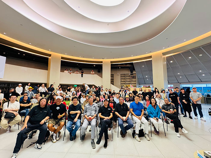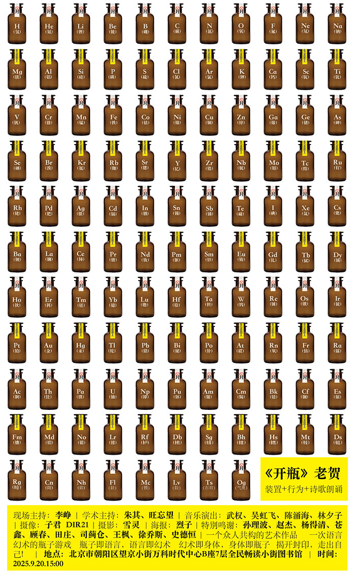 2025年9月25日下午,诗人老贺《开瓶》整体艺术展在望京万科时代中心全民畅读小街图书馆正式启动。活动吸引了150多位诗人、艺术家、音乐人、学者等齐聚会场。